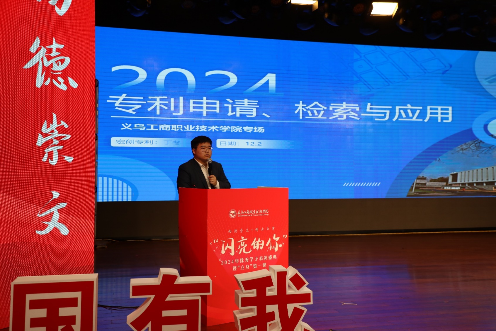 此次讲座吸引了250余名学生与教师参与。义乌市宏创专利代理事务所业务主管丁冬先生应邀主讲。