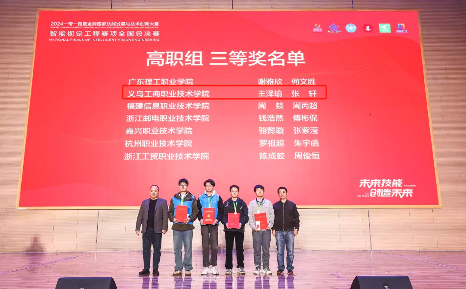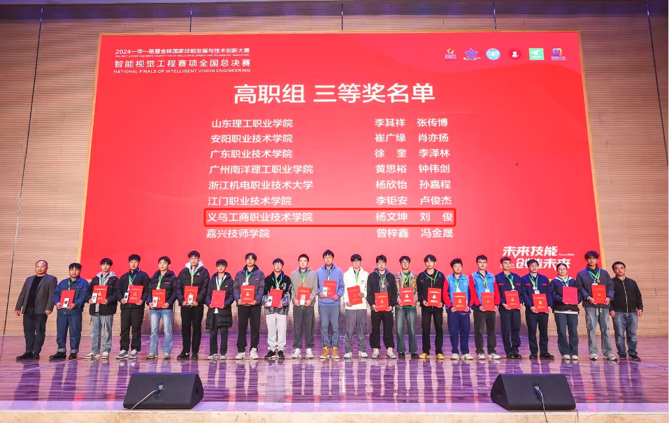 近日,2024年金砖国家技能发展与技术创新大赛之智能视觉工程赛项全国总决赛在嘉兴南洋职业技术学院圆满落下帷幕。来自全国的74所本科、中高职院校的120余支代表队参赛。经过激烈角逐,我校437必赢会员中心工业机器人教研室团队指导的4位学生获得全国三等奖2项。