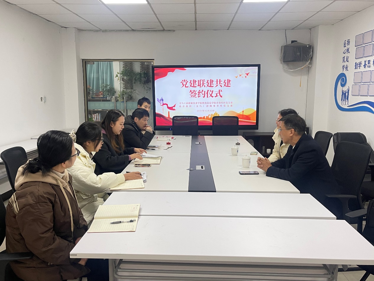 签约仪式在学院会议室隆重举行,学院领导、青春红匠党支部成员代表以及北京盈科(义乌)律师事务所党支部书记赵筱璐、单位代表出席签约仪式。学院党委副书记对赵筱璐校友及其所在律所党支部的到来表示热烈欢迎,并高度评价了此次联建共建的意义。他强调,这是学院深化校企合作、探索党建新模式的重要一步,对于提升学院党建工作水平、促进学生全面发展具有深远影响。同时,这也是学院积极响应国家关于加强基层党建工作的号召,努力构建“大党建”格局的具体行动。